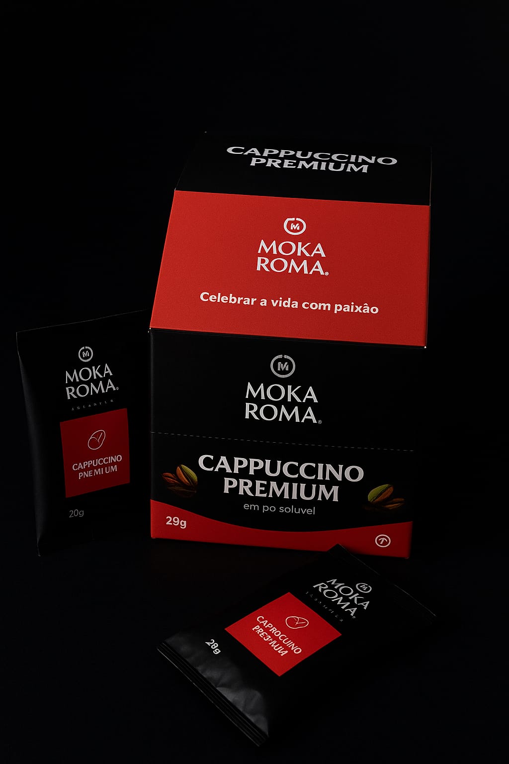 Ingredientes: Cappuccino premium: Açúcar, leite em pó integral, gordura de coco em pó, café solúvel, maltodextrina de milho, agente formador de espuma (xarope de glicose, óleo de coco totalmente hidrogenado e refinado, leite em pó desnatado, proteína do leite concentrado e estabilizante fosfato dipotássico), soro de leite em pó, cacau em pó, aromatizantes, espessante goma guar, antiumectante dióxido de silício e edulcorante sucralose.